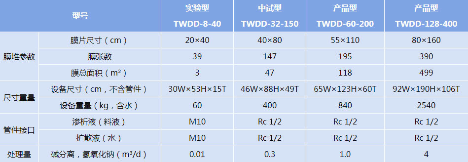 備注:上述數(shù)據(jù)均為參考值,而非設(shè)備的性能保證值,表格中的數(shù)據(jù)可能變更;堿回收擴(kuò)散滲析器可用于處理氫氧化鈉、氫氧化鉀、氫氧化鋰。