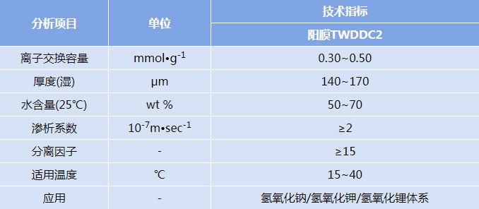 備注:上述數據均為參考值,而非離子膜的性能保證值,表格中的數據可能變更。
